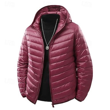 Herr Vinterkappa Dun Pufferjacka Vadderad jacka Ficka 50% vit ankdun Semester Dagliga kläder Datum Normal Mode Ledigt Bekväm Håller värmen Vinter Enfärgad / vanlig färg Vin Svart Marinblå Blå