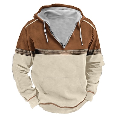 Herr Huvtröja Huvtröjor med dragkedja Vin Marinblå Brun Beige Huva Färgblock Sport & Utomhus Dagligen Helgdag Polyester Vintage Häftig Ledigt Vår & Höst Kläder Pull Tröjor Långärmad