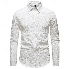 Herr Skjorta Sommarskjorta Casual skjorta Strandskjorta Knapp upp skjorta Svart Vit Långärmad Slät Kavajslag Semester Hawaiisk Jacquard Kläder Polyester Mode Ledigt Bekväm