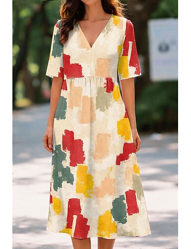 Dam Midiklänning Skiftklänning A linjeklänning Elegant Normal Nyans Grafisk Kortärmad V-hals Blå Rodnande Rosa Grön Beige Sommar Vår
