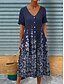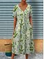 Dam Midiklänning A linjeklänning Semester Ledigt Boho Normal Blommig Grafisk Kortärmad V-hals Blå Orange Grön Beige Sommar Vår