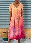 Kvinnors Maxi Klänning Linne-liknande Andningsbar Lättvikts Sommarklänning A-Linje Klänning Semester Avslappnad Boho Strand Löst Passform Grafisk Paisley 3/4 Längd Ärmar V-Hals Blå Rosa Orange Beige