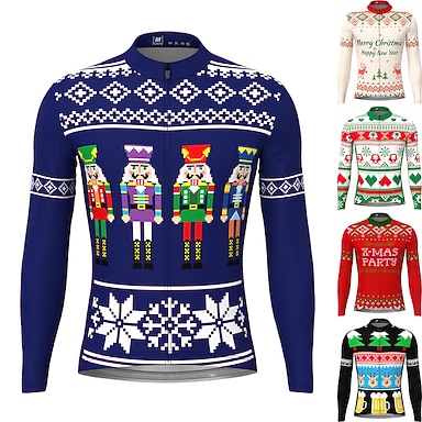 cykeltröja herr långärmad cykeltröja topp med 3 bakfickor ful jul rolig jul mountainbike mtb landsvägscykel cykling andas snabbtorkande fukttransporterande reflexremsor blå