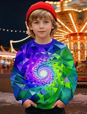Pojkar 3D Grafisk Geometrisk 3D Print Tröja Långärmad Vår Höst Mode Grundläggande Barn 4-12 år Rund hals Utomhus Ledigt Dagligen Normal