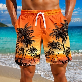Herr Kokosnötsträd Palmträd Tropiska växter Badshorts Baddräkter Badshorts Boardshorts Medium Midja Hawaiisk Utomhus Semester Vardag Sidfickor Mesh foder Elastisk dragsko i midjan Designer Kläder