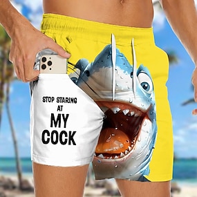 Herr Haj Rolig Slang tecknade djur Fodrade shorts 2 i 1 simshorts Badshorts Medium Midja Hawaiisk Strandsemester Sidfickor Med kompressionsfoder Elastisk dragsko i midjan Designer Kläder