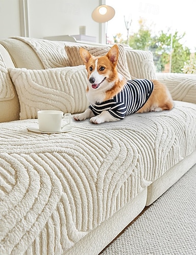 modernt geometriskt sofföverdrag för husdjur hund mjuk plysch halkfri soffskydd sofföverdrag husdjursvänligt