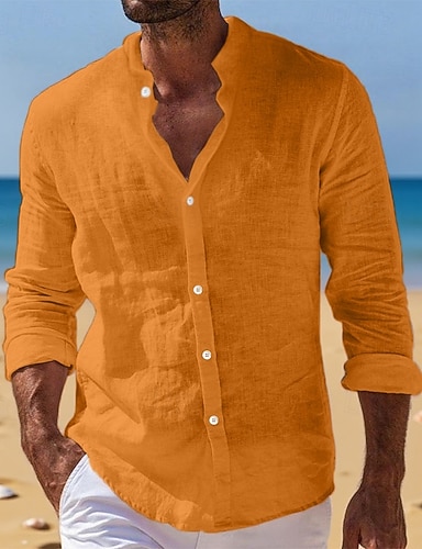 Herr Skjorta Sommarskjorta Standkläder Knapp upp skjorta Slät Ledigt Dagligen Svart Vit Rodnande Rosa Orange Långärmad Bandkrage Vår & sommar Sommar Kläder Slät