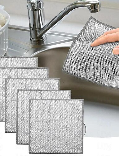 5 st ståltråd rengöringsduk kök magisk diskhandduk non stick olja rengöring trasa mikrovågsugn spis rena verktyg disktrasa