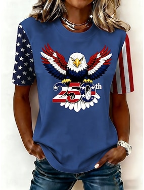 Självständighetsdag Patriotiska Kvinnors T-shirt Grafisk Flagga Vintage Stilren Klassisk Kort Ärmd Rundhals Vanliga Toppar Daglig Helgtryck Blå Röd Sommar Vår