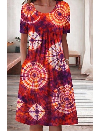 dam maxiklänning bohemisk sommarklänning a-linjeklänning semester avslappnad bohemisk strand utekväll standardpassform blommig grafisk kortärmad v-ringning orange röd rosa sommar vår