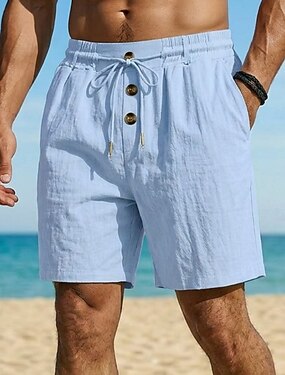 Herr Shorts Linne Shorts Sommarshorts Beach Shorts Snörning Elastisk midja Slät Komfort Andningsfunktion Knelängd Dagligen Utomhus Helgdag Semester Mode Blå Svart Oelastisk