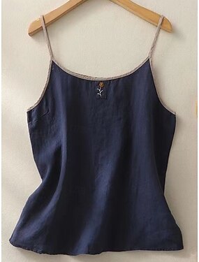 Kvinnors linne-liknande faux bomull linne skjortor broderad enfärgad grundläggande avslappnad ärmlös axelband vanliga toppar daglig marinblå aprikos beige sommar vår