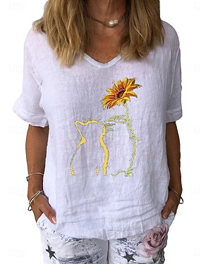 Dam Linneskjorta T-shirt T-tröja Mönster Blommig Grafisk Mode Klassisk Ledigt Kortärmad V-hals Vanliga toppar Dagligen Utekväll Helgen Vit Gul Marinblå Grå Ljusblå Sommar Vår