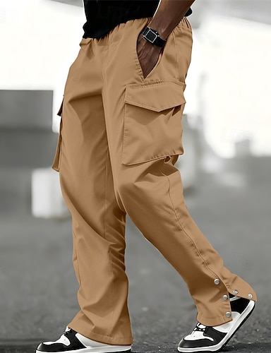 Herr Militärbyxor Cargo byxor Knappar Elastisk midja Flera fickor Slät Komfort Bärbar Ledigt Dagligen Helgdag Sport Mode Svart Kaki