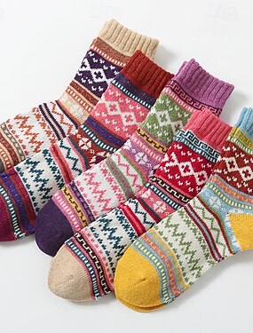 Strumpor Sport strumpor Roliga strumpor Utomhusträning Gång Cykel / Cykelsport Håller värmen Vindtät 5 par Grafisk Geometrisk Polyester Rosa Grön Kaki En Storlek