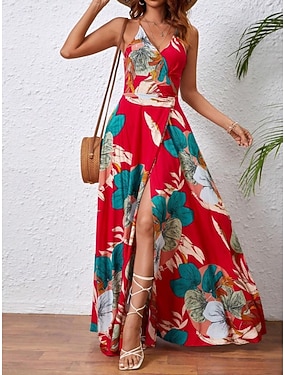 Dam Maxiklänning Vardagsklänning Blommig klänning Slipklänning Elegant Mode Modern Utomhus Semester Utekväll Normal Blommig Ärmlös V-hals Svart Vit Gul Rubinrött Sommar Vår
