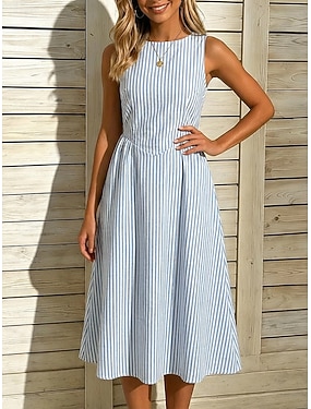Dam Midiklänning Vardagsklänning Randig klänning A linjeklänning Elegant Mode Dagligen Semester Normal Randig Ärmlös Rund hals Blå Svart Gul Rosenröd Sommar Vår