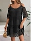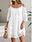 Dam Mini klänning Vit klänning Examensklänning Spetsklänning Boho-klänning Stylish Grundläggande Modern Semester Lös passning Ren färg Halvlång ärm Rund hals Svart Vit Grön Ljusblå Sommar Vår