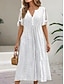 Dam Maxiklänning Solklänning Vit klänning Mode Klassisk Modern Utomhus Semester Utekväll Normal Slät Kortärmad Tröjkrage Vit Sommar Vår