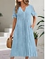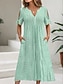 Dam Midiklänning Boho-klänning A linjeklänning Sommarklänning Plisserad klänning Elegant Mode Modern Ledigt Dagligen Utomhus Lös passning Slät Kortärmad V-hals Blå Vit Mörkgrön Grön Sommar Vår