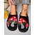 svarta blommiga sandaler med t-band för kvinnor med bekväm sula - avslappnade sommarskor för strand- och vardagsutflykter