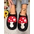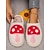 Mysiga svarta, fluffiga tofflor för kvinnor med röd svampdesign, plyschiga tofflor för hemmabruk och kallt väder
