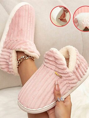kvinnors rosa plysch inomhustofflor med fleecefoder – mysiga halkfria vinterhusskor för hemkomfort