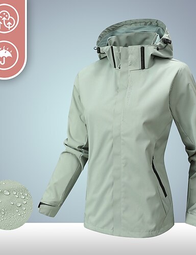 Dam Dun Vattentäta regnjackor Regnrockar Anorak Håller värmen Vattentät Dragkedja 2 i 1 Aktiv Sport Utomhus Särskild Ensfärgat Utomhus Sport Natt Dagliga kläder Huva Normal Långärmad Ytterkläder