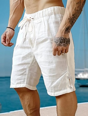 Herr Shorts Linne Shorts Sommarshorts Beach Shorts Knappar Ficka Slät Komfort Andningsfunktion Kort Semester Helgdag Strand Hawaiisk Boho Vit Kaki