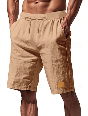 Herr Shorts Linne Shorts Sommarshorts Beach Shorts Snörning Elastisk midja Rakt ben Ensfärgat Komfort Andningsfunktion Knelängd Utomhus Dagligen Helgdag Semester Mode 다크 카키 Svart