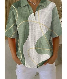 Dam Våffelskjorta Casual skjorta Summer Tops Grafisk Geometrisk Elegant Aktiv Semester Ärmlös Vanliga toppar Dagligen Utomhus Arbete Ljuslila Grön Regnbåge Sommar Vår Höst