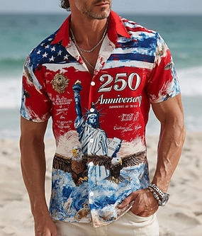 Herr 4 juli USA:s 250-årsjubileum Örn Vi folket Skjorta Knapp upp skjorta Kortärmad Patriotisk Utomhus Helgdag Sommar Vår Nedvikt 3D-utskrift krage skjortor Svart Vinröd Mörkblå