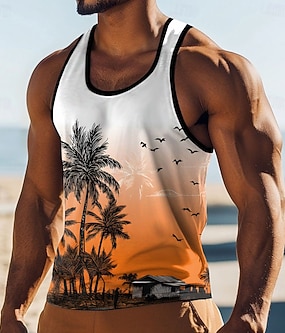 herr palmträd solnedgång strandstuga tropisk mås grafisk linne väst ärmlös skjorta u-ringad sommar strand semester semester mode avslappnad sport t-shirt kläder s m l xl xxl xxxl