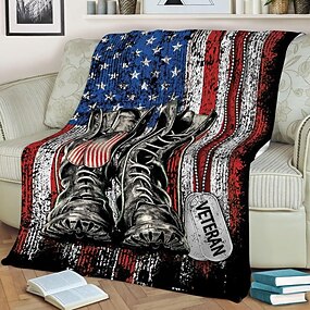 Självständighetsdagen gobeläng Fleecefiltar Filt för soffan Present amerikanska flaggan Veteran Klassisk 3D Soffa Säng Dekorativ filt Varm filt Heminredning