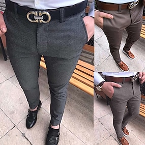 Herr Studenten Kostymbyxor Långbyxor Kinesiska Knappar Ficka Slät Komfort Formell Fest Arbete Mode Klassisk Stil Svart Kaki Microelastisk