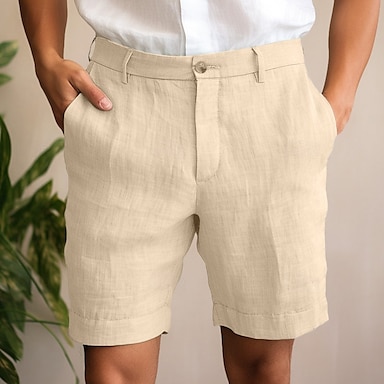 Herr Shorts Linne Shorts Klänning Shorts Sommarshorts Dragkedja Ficka Knappar Slät Komfort Mjuk Utomhus Dagligen Utekväll Mode Ledigt Svart Vit