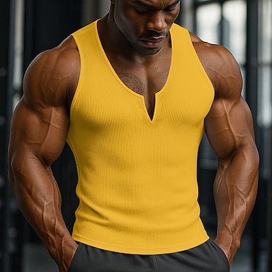 Herr Våffellinne Linne Väst Undertröjor Ärmlös V-hals Sommar Slät Mode Sportig Klassisk Gata Ledigt Sport Vit Gul Blå Topp t-shirt för män
