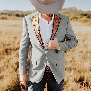 Herr Kavaj Företag Cocktailfest Bröllopsfest Mode Ledigt Vår Höst Polyester Färgblock Lappverk Ficka Bekväm Enkelknäppt Blazer Svart Beige