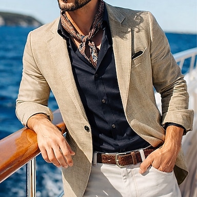 Herr Kavajjacka Linne blazer Naggkrage Mode Ledigt Solid färg Blå 다크 카키 Svart Skräddarsydd passform Enkelknäppt tvåknappar
