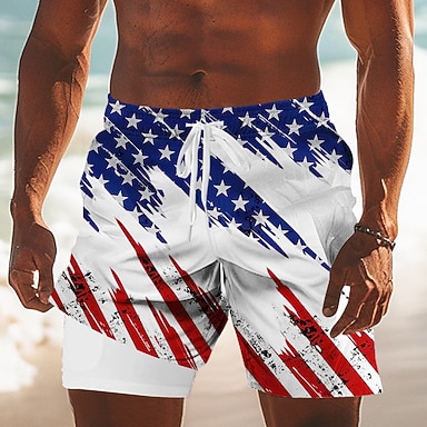 Herr 4 juli USA:s 250-årsjubileum Amerikanska flaggan Fodrade shorts 2 i 1 simshorts Badshorts Medium Midja Patriotisk Helgdag Sidfickor Med kompressionsfoder Elastisk dragsko i midjan Designer Kläder