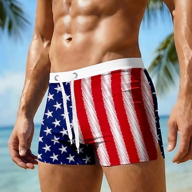 Herr Flagga 4 juli USA:s 250-årsjubileum Amerikanska flaggan Badshorts Boardshorts Boxershorts Medium Midja Mode Designer Strand Surfing Helgdag Snörning Ficka Elastisk midja Designer Kläder