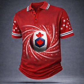 Fotbollscupen 2026 Herr Fotboll Pikétröjor Kortärmad Polotröjor Skjortor med krage Ledigt Fritids- 3D-utskrift Knappar Sommar Vår Vit Rubinrött Grön