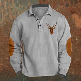 Herr Grafisk Häst Flanell pikétröja Långärmad Polotröjor Skjortor med krage Ledigt Utomhus Vardag Friluftskläder 3D-utskrift Gul Rubinrött Grå