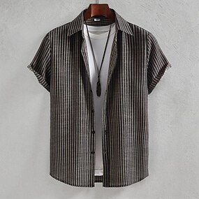 Herr Skjorta Sommarskjorta Casual skjorta Strandskjorta Knapp upp skjorta Randiga skjortor Svart Kortärmad Rand Nedvikt Semester Hawaiisk Kläder Polyester Mode Ledigt Bekväm