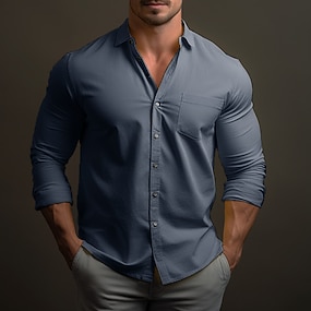 Herr Skjorta Casual skjorta Blå Långärmad Ensfärgat Nedvikt Formell Knappar Kläder Dagligen