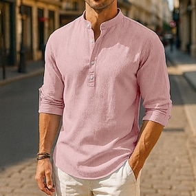 Herr Skjorta Casual skjorta Waffle Henley Shirt Knapp upp skjorta Svart Vit Ljusgrön Rodnande Rosa Blå Långärmad Slät Henley Dagligen Utekväll Kläder Mode Streetwear Modern Ledigt