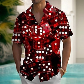 Herr Tärning Skjorta Sommarskjorta Knapp upp skjorta Kortärmad Vintage retro Utomhus Semester Vardag Sommar Vår Nedvikt 3D-utskrift krage skjortor Främre en ficka Rubinrött Blå