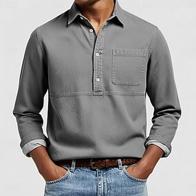 Herr Skjorta Casual skjorta Bandkrageskjorta Vit Rodnande Rosa Marinblå Grön Khaki grön Långärmad Slät Kraghalsband Henley Ledigt Utomhus Ficka Kläder Polyester Neutral Mode Dagligen