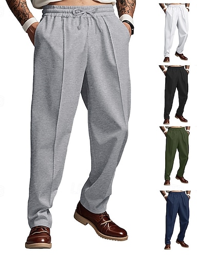Herr Joggingbyxor Långbyxor Casual byxor Plisserade byxor Ficka Snörning Elastisk midja Slät Komfort Mjuk Fullängd Utomhussport Företag Dagligen Mode Streetwear Svart Vit